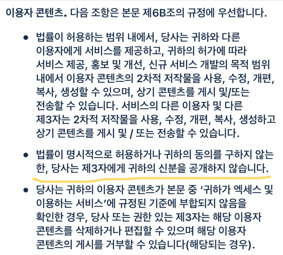 여타 SNS 앱에도 명시되어 있는 약관이라고 하며