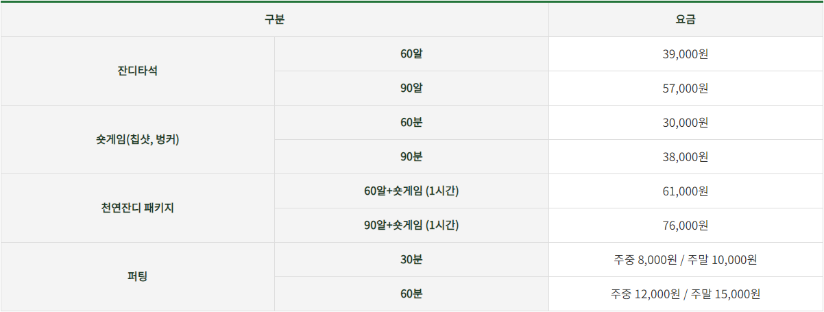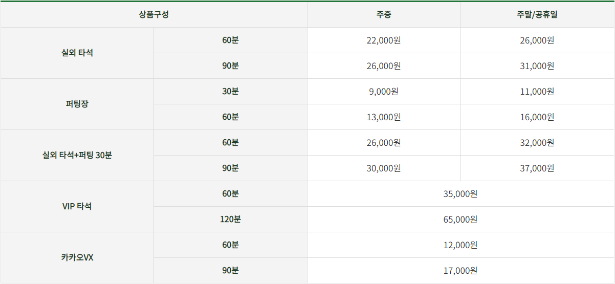 솔트베이 연습장 요금표입니다!