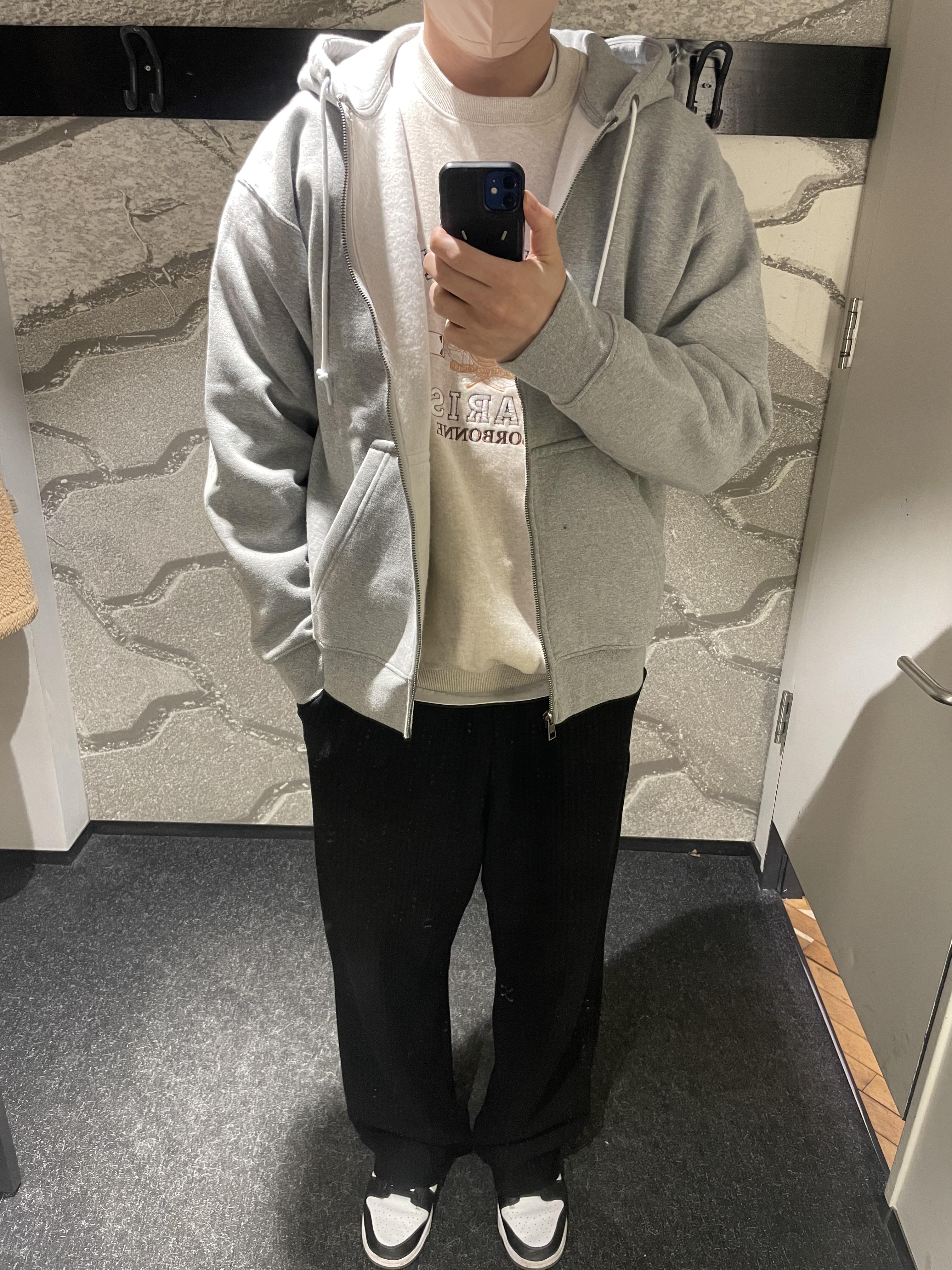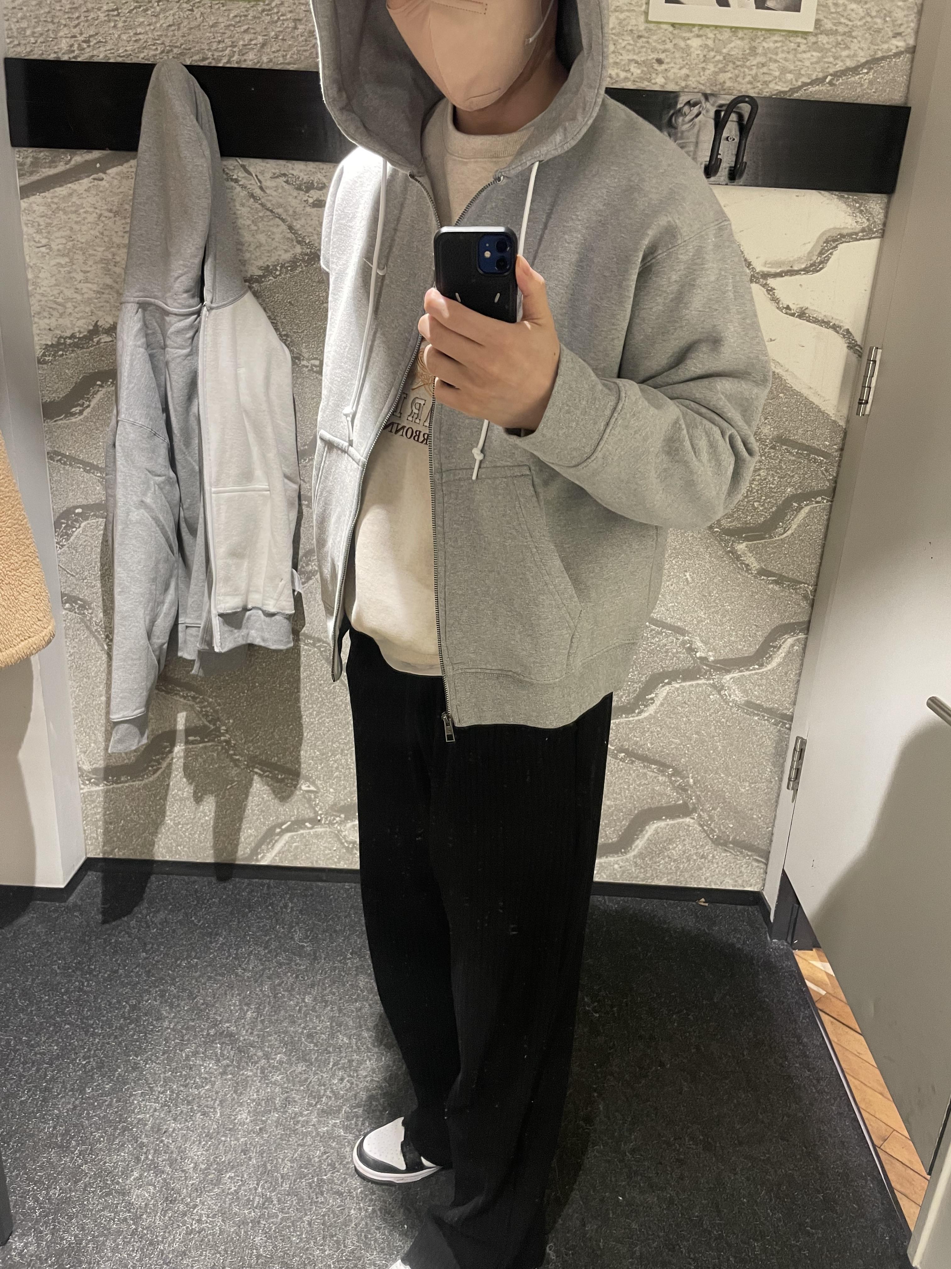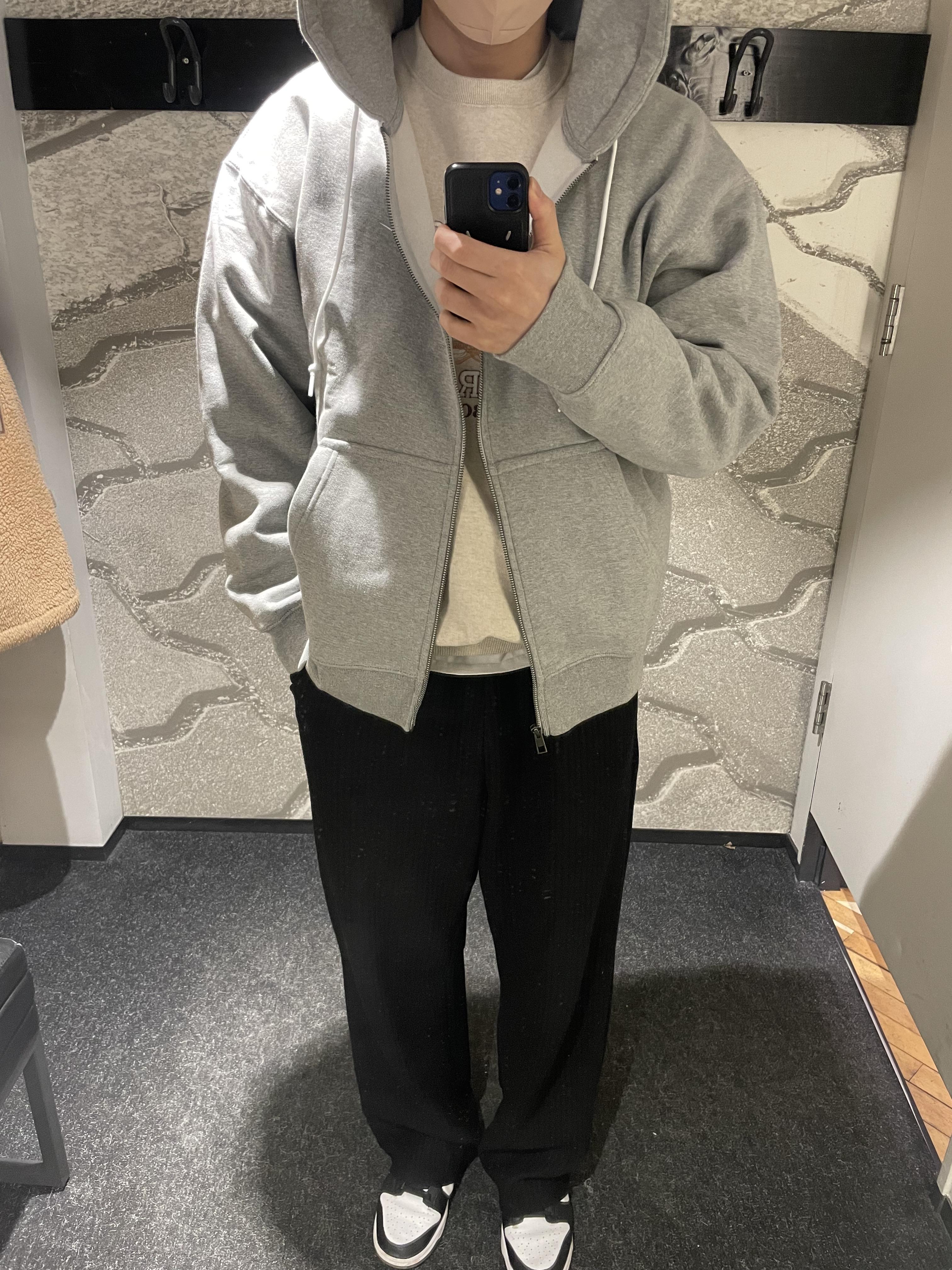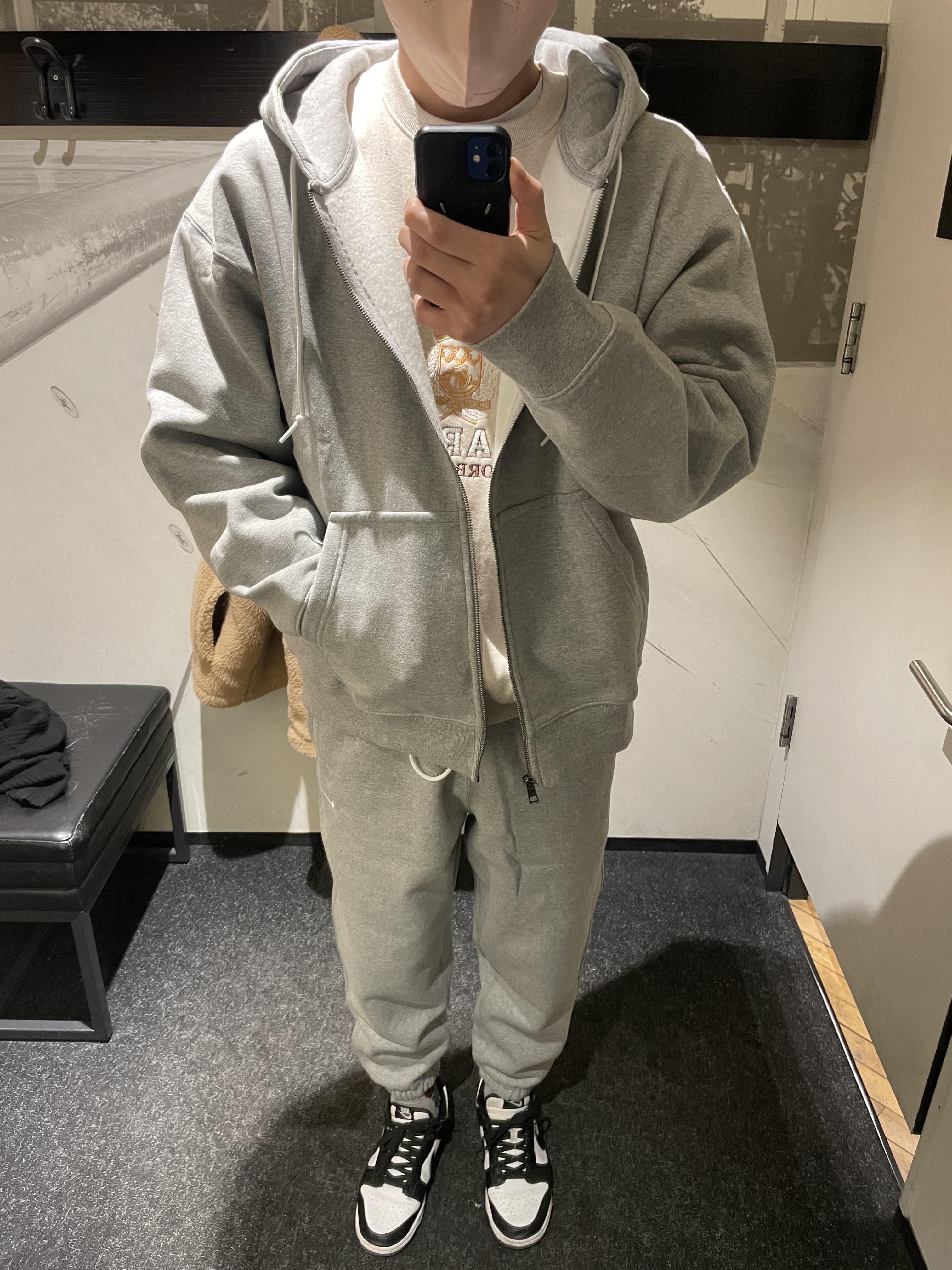NRG 집업후드 + NRG 플리츠 팬츠였어요. (그레이)