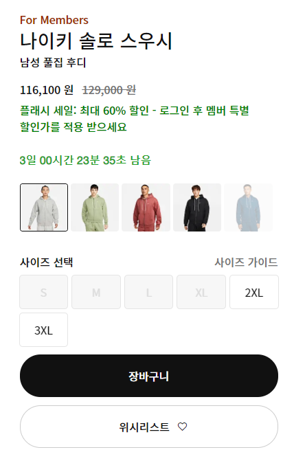 매장엔 그레이 색상 기준 NRG후드는 L ~ 3XL 까지 있던 상태였고요